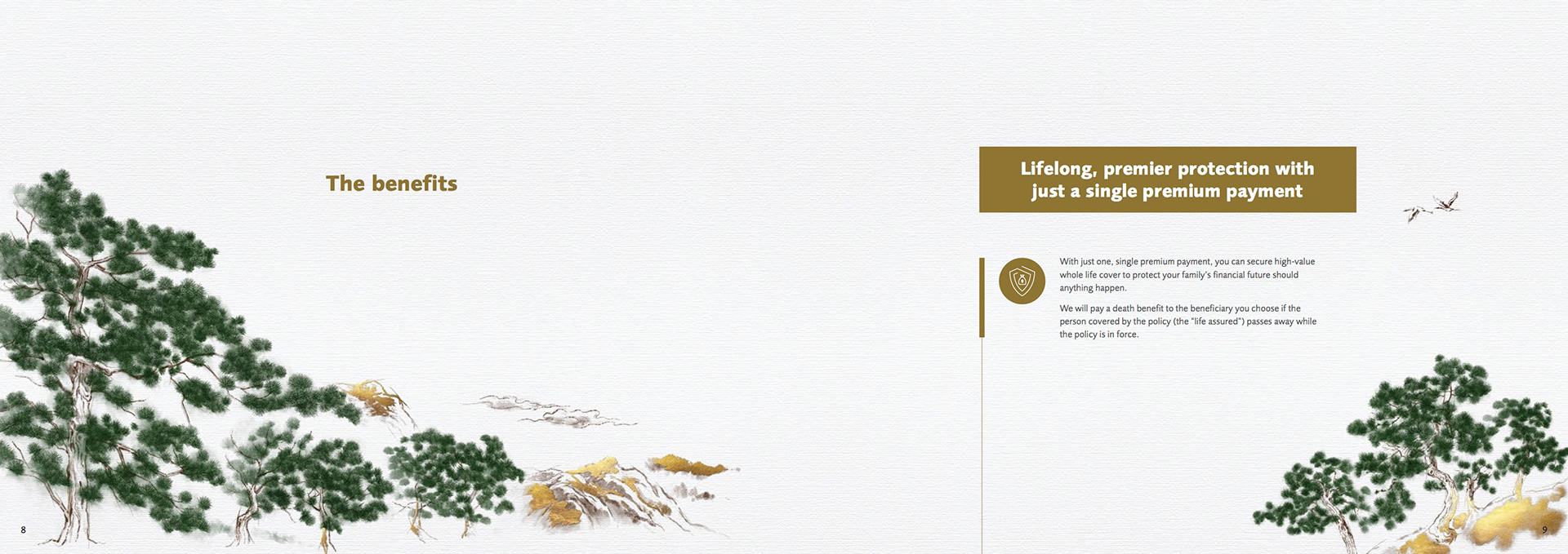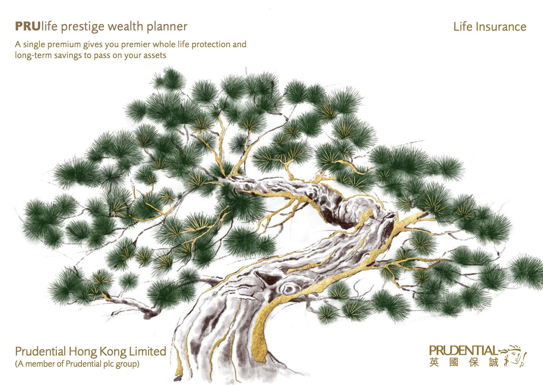 Brochure design for the Prestige Life Insurance plan of Prudential Hong Kong.