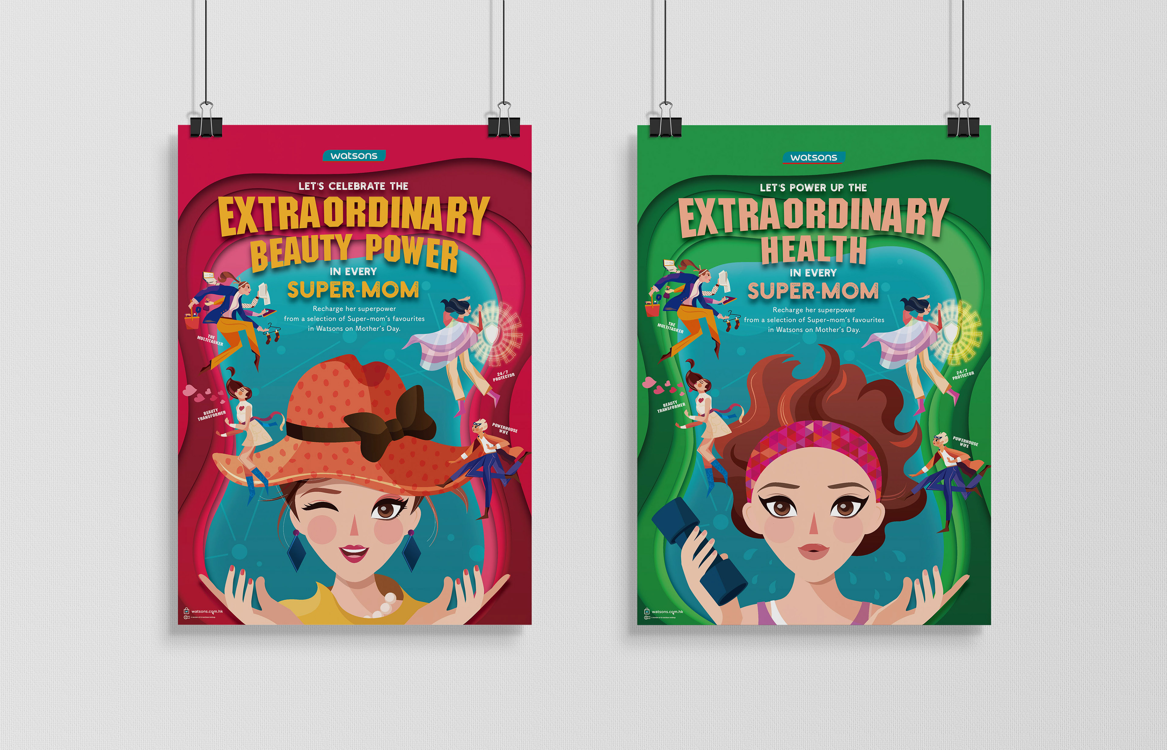 2 Illustrated Posters for Watsons to celebrate Mothers' Day.